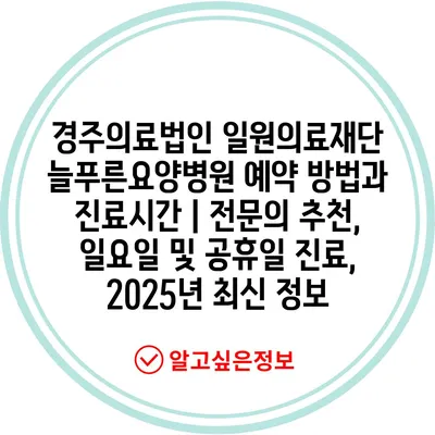 경주의료법인 일원의료재단 늘푸른요양병원 예약 방법과 진료시간 | 전연락 추천, 일요일 및 공휴일 진료, 2025년 최신 정보에 대해 자주 묻는 질문 TOP 5