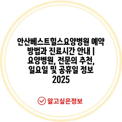 안산베스트힐스요양병원 예약 방법과 진료시간 공지 | 요양병원, 전연락 추천, 일요일 및 공휴일 정보 2025 에 대해 자주 묻는 질문 TOP 5