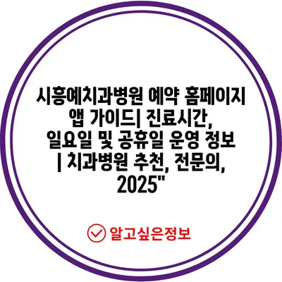 시흥예치과병원 예약 홈페이지 앱 가이드| 진료시간, 일요일 및 공휴일 운영 정보 | 치과병원 추천, 전문의, 2025″