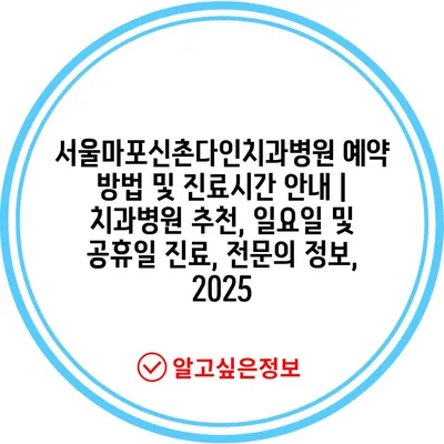 서울마포신촌다인치과병원 예약 방법 및 진료시간 공지 | 치과병원 추천, 일요일 및 공휴일 진료, 전연락 정보, 2025 에 대해 자주 묻는 질문 TOP 5