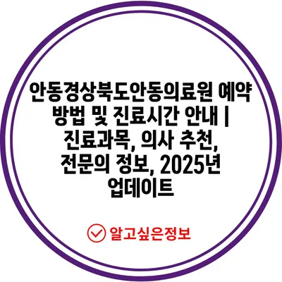 ✅ 안동의료원 예약 방법과 진료시간, 필요 정보를 한눈에 알아보세요.