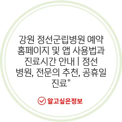 ✅ 정선군립병원의 예약 방법과 진료시간을 알아보세요!
