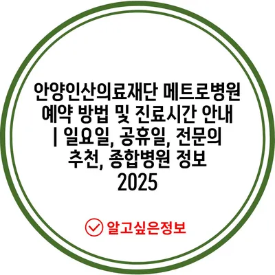 안양인산의료재단 메트로병원 예약 방법 및 진료시간 안내 | 일요일, 공휴일, 전문의 추천, 종합병원 정보 2025