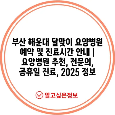 부산 해운대 달맞이 요양병원 예약 및 진료시간 안내 | 요양병원 추천, 전문의, 공휴일 진료, 2025 정보