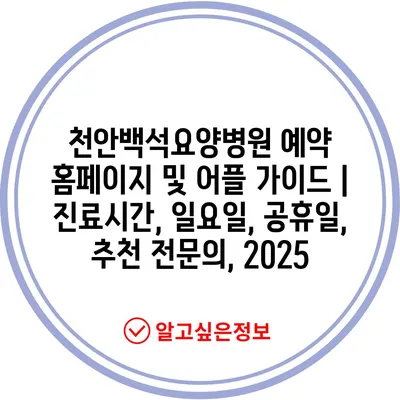 천안백석요양병원 예약 홈페이지 및 어플 설명서 | 진료시간, 일요일, 공휴일, 추천 전연락, 2025 에 대해 자주 묻는 질문 TOP 5