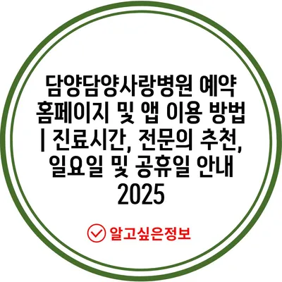 담양담양사랑병원 예약 홈페이지 및 앱 이용 방법 | 진료시간, 전연락 추천, 일요일 및 공휴일 공지 2025에 대해 소개합니다.