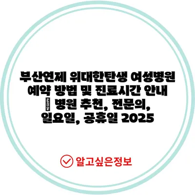 부산연제 위대한탄생 여성병원 예약 방법 및 진료시간 공지 | 병원 추천, 전연락, 일요일, 공휴일 2025 에 대해 자주 묻는 질문 TOP 5