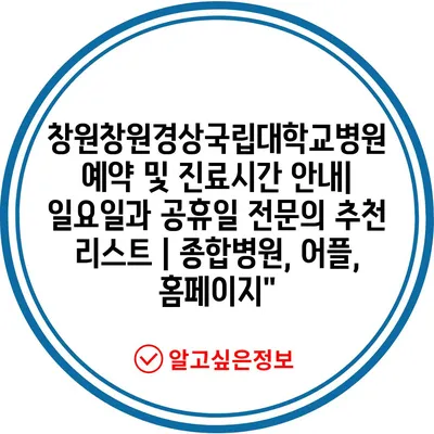 ✅ 창원경상국립대학교병원의 예약 방법과 진료시간을 지금 바로 알아보세요.