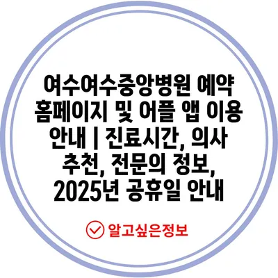 ✅ 여수여수중앙병원의 예약 시스템과 진료 정보를 지금 바로 확인해 보세요.