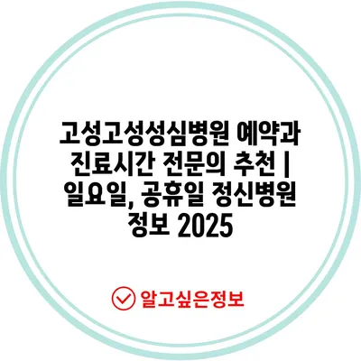 ✅ 고성고성성심병원의 예약 방법과 진료시간을 지금 바로 알아보세요!