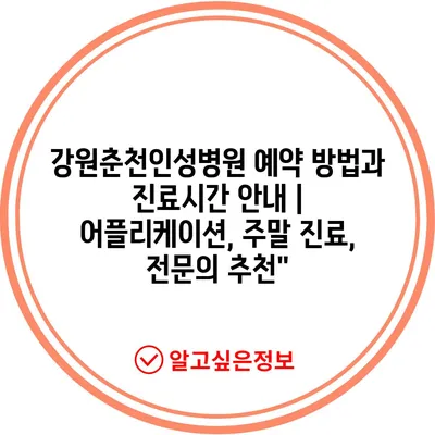 ✅ 강원 춘천인성병원의 간편한 예약 방법을 지금 확인하세요!