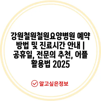 강원철원철원요양병원 예약 방법 및 진료시간 공지 | 공휴일, 전연락 추천, 어플 활용법 2025