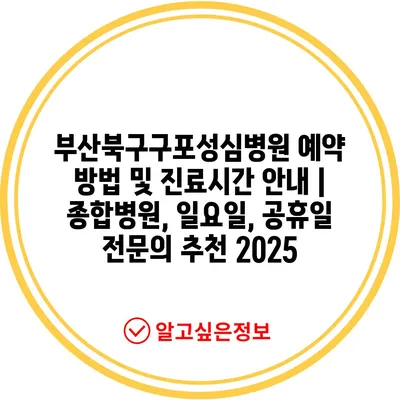 부산북구구포성심병원 예약 방법 및 진료시간 공지 | 종합병원, 일요일, 공휴일 전연락 추천 2025 에 대해 자주 묻는 질문 TOP 5