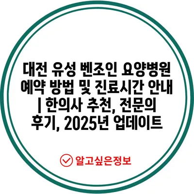 대전 유성 벤조인 요양병원 예약 방법 및 진료시간 공지 | 한의사 추천, 전연락 후기, 2025년 업데이트 에 대해 자주 묻는 질문 TOP 5