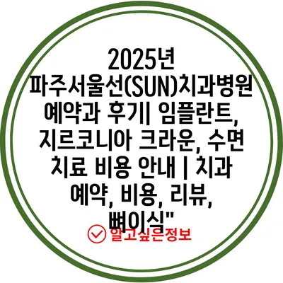 2025년 파주서울선(SUN)치과병원 예약과 후기| 임플란트, 지르코니아 크라운, 수면 치료 비용 공지 | 치과 예약, 비용, 리뷰, 뼈이식에 대해 소개합니다.