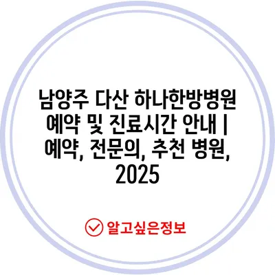 남양주 다산 하나한방병원 예약 및 진료시간 공지 | 예약, 전연락, 추천 병원, 2025