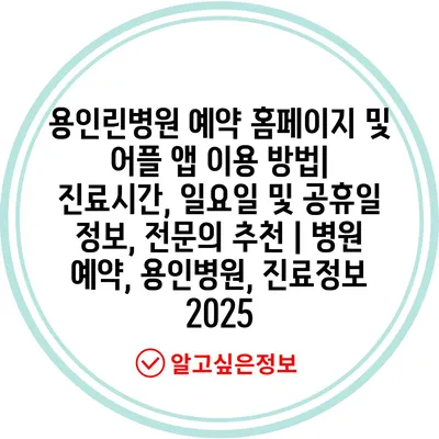용인린병원 예약 홈페이지 및 어플 앱 이용 방법| 진료시간, 일요일 및 공휴일 정보, 전문의 추천 | 병원 예약, 용인병원, 진료정보 2025
