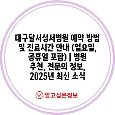 ✅ 대구달서성서병원의 예약 방법을 지금 확인해 보세요!