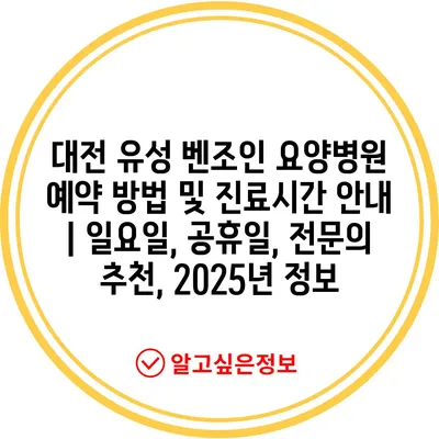 대전 유성 벤조인 요양병원 예약 방법 및 진료시간 공지 | 일요일, 공휴일, 전연락 추천, 2025년 정보 에 대해 자주 묻는 질문 TOP 5