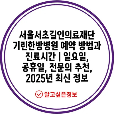 서울서초길인의료재단 기린한방병원 예약 방법과 진료시간 | 일요일, 공휴일, 전연락 추천, 2025년 최신 정보에 대해 자주 묻는 질문 TOP 5