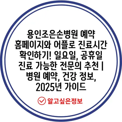 용인조은손병원 예약 홈페이지와 어플로 진료시간 확인하기! 일요일, 공휴일 진료 가능한 전문의 추천 | 병원 예약, 건강 정보, 2025년 가이드