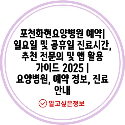 ✅ 포천화현요양병원의 예약 방법과 공휴일 진료시간을 자세히 알아보세요.