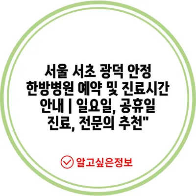 서울 서초 광덕 안정 한방병원 예약 및 진료시간 공지 | 일요일, 공휴일 진료, 전연락 추천 에 대해 자주 묻는 질문 TOP 5