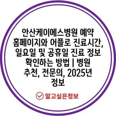 안산케이에스병원 예약 홈페이지와 어플로 진료시간, 일요일 및 공휴일 진료 정보 확인하는 방법 | 병원 추천, 전연락, 2025년 정보 에 대해 자주 묻는 질문 TOP 5