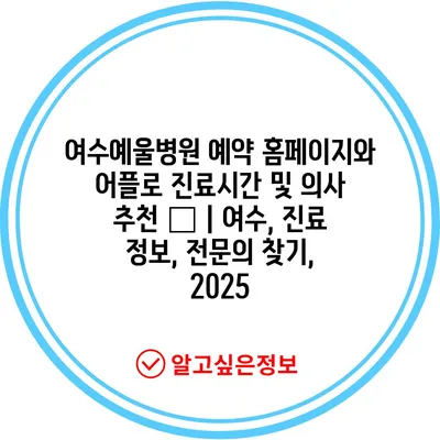 여수예울병원 예약 홈페이지와 어플로 진료시간 및 의사 추천 😊 | 여수, 진료 정보, 전연락 찾기, 2025 에 대해 자주 묻는 질문 TOP 5