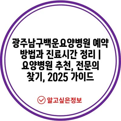 ✅ 광주남구백운요양병원 예약 방법을 자세히 알아보세요.