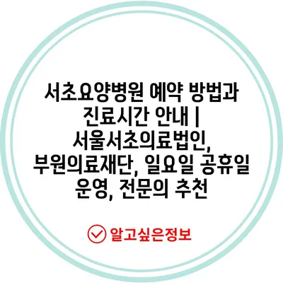 서초요양병원 예약 방법과 진료시간 공지 | 서울서초의료법인, 부원의료재단, 일요일 공휴일 운영, 전연락 추천 에 대해 자주 묻는 질문 TOP 5