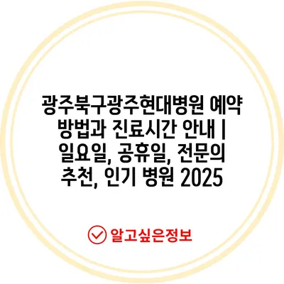 광주북구광주현대병원 예약 방법과 진료시간 공지 | 일요일, 공휴일, 전연락 추천, 인기 병원 2025 에 대해 자주 묻는 질문 TOP 5