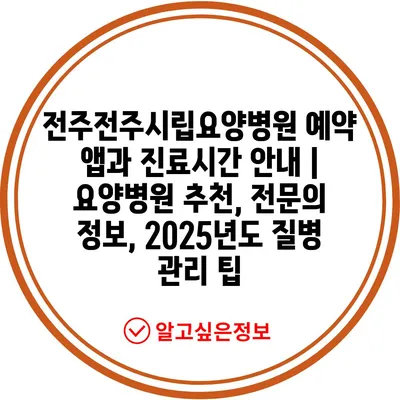 전주전주시립요양병원 예약 앱과 진료시간 공지 | 요양병원 추천, 전연락 정보, 2025년도 질병 관리 팁 에 대해 자주 묻는 질문 TOP 5