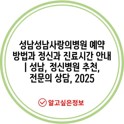 성남성남사랑의병원 예약 방법과 정신과 진료시간 공지 | 성남, 정신병원 추천, 전연락 상담, 2025 에 대해 자주 묻는 질문 TOP 5