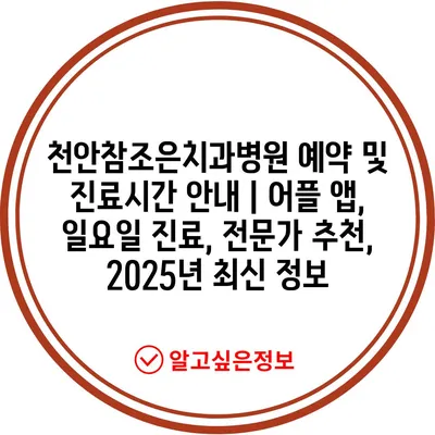 천안참조은치과병원 예약 및 진료시간 안내 | 어플 앱, 일요일 진료, 전문가 추천, 2025년 최신 정보