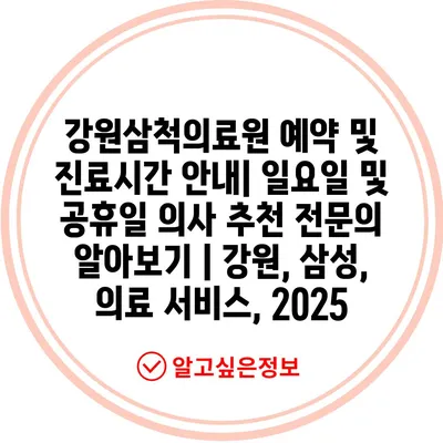 강원삼척의료원 예약 및 진료시간 공지| 일요일 및 공휴일 의사 추천 전연락 알아보기 | 강원, 삼성, 의료 서비스, 2025 에 대해 자주 묻는 질문 TOP 5