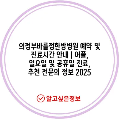 의정부바를정한방병원 예약 및 진료시간 공지 | 어플, 일요일 및 공휴일 진료, 추천 전연락 정보 2025