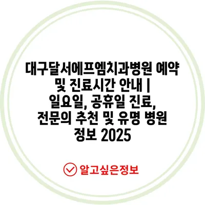 대구달서에프엠치과병원 예약 및 진료시간 공지 | 일요일, 공휴일 진료, 전연락 추천 및 유명 병원 정보 2025 에 대해 자주 묻는 질문 TOP 5
