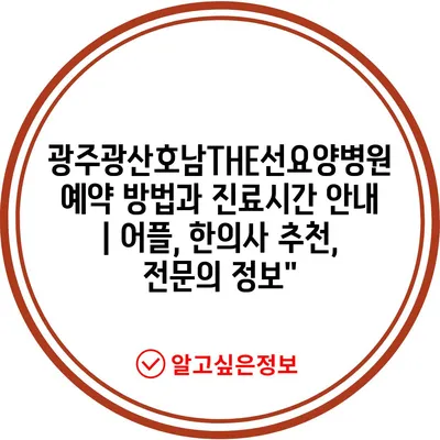 ✅ 광주광산호남THE선요양병원 예약 방법과 진료시간을 지금 바로 알아보세요!