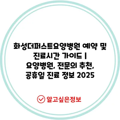 화성더퍼스트요양병원 예약 및 진료시간 설명서 | 요양병원, 전연락 추천, 공휴일 진료 정보 2025에 대해 자주 묻는 질문 TOP 5