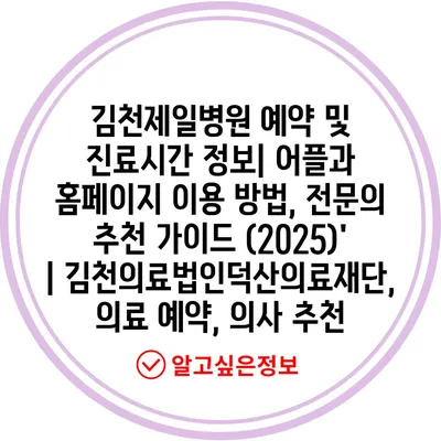 ✅ 김천제일병원의 예약 절차와 진료시간을 상세히 알아보세요.
