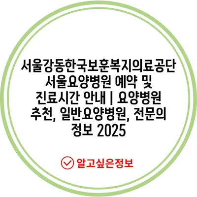 ✅ 서울강동한국보훈복지의료공단의 진료시간 및 예약 방법을 알아보세요.
