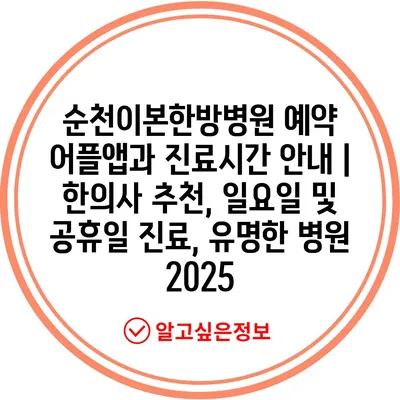 ✅ 순천이본한방병원의 진료시간과 예약 방법을 확인해 보세요.
