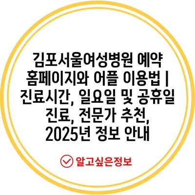 김포서울여성병원 예약 홈페이지와 어플 이용법 | 진료시간, 일요일 및 공휴일 진료, 전문가 추천, 2025년 정보 공지 에 대해 자주 묻는 질문 TOP 5