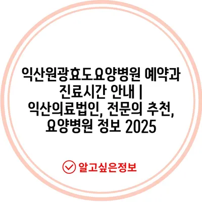 ✅ 익산원광효도요양병원 예약 방법을 상세히 알아보세요.