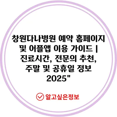 창원다나병원 예약 홈페이지 및 어플앱 이용 설명서 | 진료시간, 전연락 추천, 주말 및 공휴일 정보 2025
