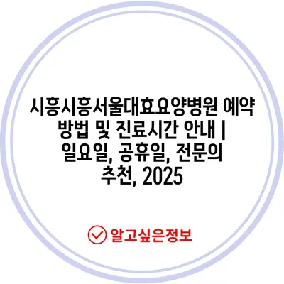 시흥시흥서울대효요양병원 예약 방법 및 진료시간 공지 | 일요일, 공휴일, 전연락 추천, 2025