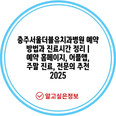 ✅ 충주서울더블유치과병원 예약 방법을 자세히 알아보세요.