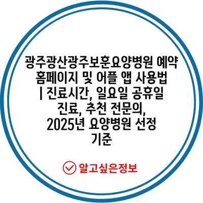 광주광산광주보훈요양병원 예약 홈페이지 및 어플 앱 사용법 | 진료시간, 일요일 공휴일 진료, 추천 전연락, 2025년 요양병원 선정 기준 에 대해 자주 묻는 질문 TOP 5