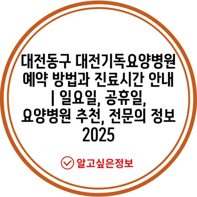대전동구 대전기독요양병원 예약 방법과 진료시간 공지 | 일요일, 공휴일, 요양병원 추천, 전연락 정보 2025 에 대해 자주 묻는 질문 TOP 5